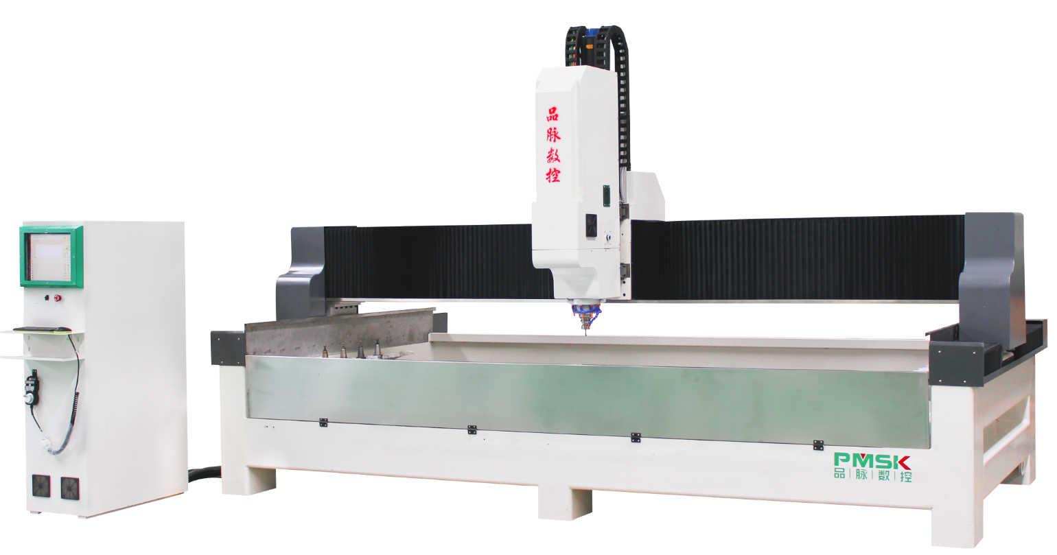 石材數(shù)控加工中心的控制系統(tǒng),它的功能是接收輸入的石材臺面加工尺寸信息,經(jīng)自動計算處理發(fā)出各種控制命令,如向伺服驅(qū)動分配相對位移指令信號,并由此使機床主軸攜帶各種刀具在伺服電機的驅(qū)動下,按預定的軌跡運動加工石材臺面開孔、磨邊、自動換刀拋光等石材臺面所需工藝。