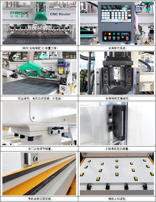 ◆ 9.0KW大功率風(fēng)冷換刀主軸,適合柜體長時間高速切割下料、以及各種造型的雕銑加工。