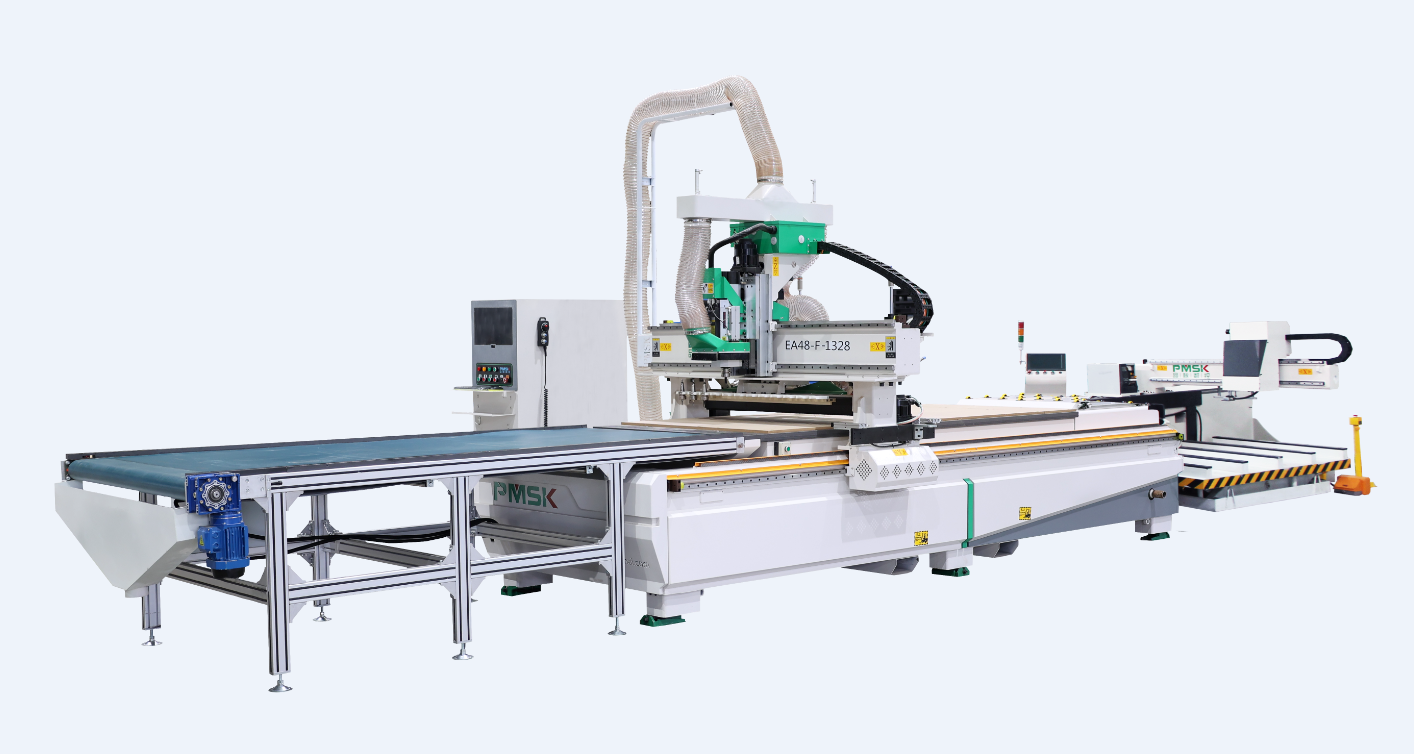 直排加工中心主要用于板式家具柜體以及門板的加工生產(chǎn);可快速鉆孔、開槽與切割下料加工,可加工常見的板式家具二合一、三合一連接件安裝孔位,具備加工部分種類隱形連接件的功能;本機配備大功率換刀主軸及直排式刀庫,適合多元化復(fù)雜性產(chǎn)品加工或多樣加工,用途廣泛:可一次性下料、鉆孔、切割、倒邊、雕刻等;操作簡單,特別適合定制化需求生產(chǎn)加工。