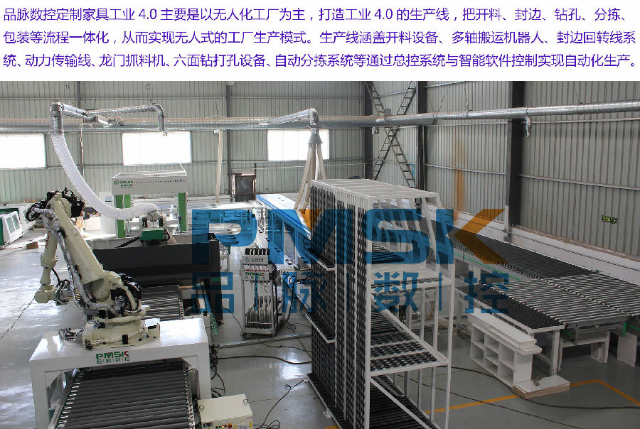 a.全自動(dòng)數(shù)控開(kāi)料機(jī)—雙工序排鉆開(kāi)料機(jī)+自動(dòng)上下料:用于板式家具正反面打孔、開(kāi)槽與切割下料;
